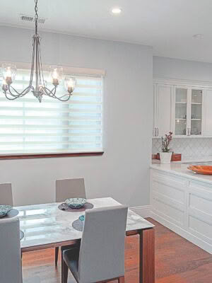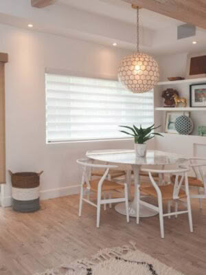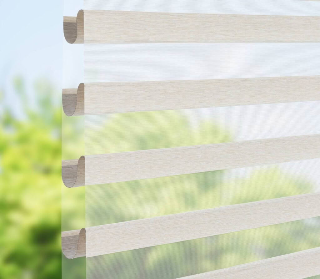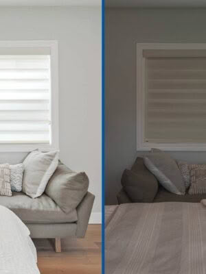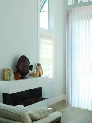 PerfectSheer brings together the elegance of flowing fabric with the functionality of a blind. Its unique three-layered design transitions effortlessly from open sheers to light filtering or room darkening—offering subtle privacy and soft light, or full shade and comfort when needed.